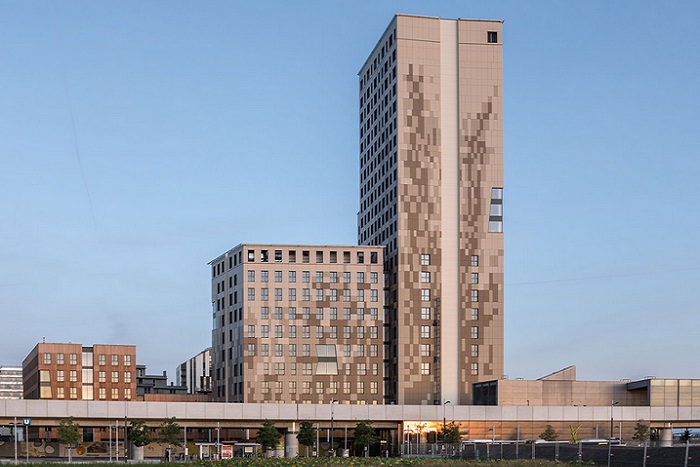 Первым зданием, полностью выполненным из CLT-панелей стал 9-этажный дом Stadthaus в Лондоне. Несущая конструкция было возведена менее, чем за месяц всего четырьмя строителями, а на все работы, включая внутреннюю отделку понадобилось около года — как минимум в полтора раза меньше, чем на железобетонное здание такой же площади и высотности.