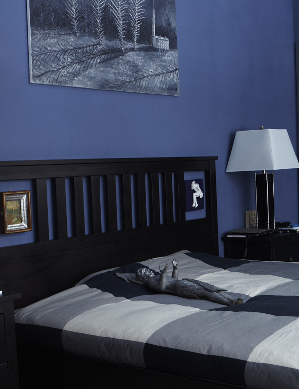 «Я всегда любил прилечь, даже работаю полулежа. В „Обломове“ подушки были шикарные — бархатные, черно-желтые. Здесь они попроще, зато их можно выносить на улицу», — говорит Артемий, кивая в сторону открытой галереи, опоясывающей дом по периметру. Правда, сразу же признается, что воспользоваться такой возможностью пока не успел: семейство Троицких переехало в дом в августе 2011 года, а почти всё лето 2012-го они провели в Америке, где он читал лекции в одном из университетов.