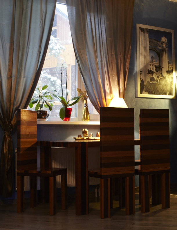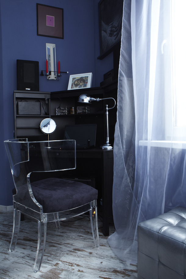 К этому моменту я уже успеваю выяснить, что услугами дизайнеров они вообще не пользовались, всё делали сами: «Все почему-то думают, что тут какие-то профессионалы приложили руку. Нет, не прикладывали даже мизинца. И это принципиально — я считаю, что люди, у которых есть фантазия и чувство стиля, никогда не станут обращаться к дизайнеру».