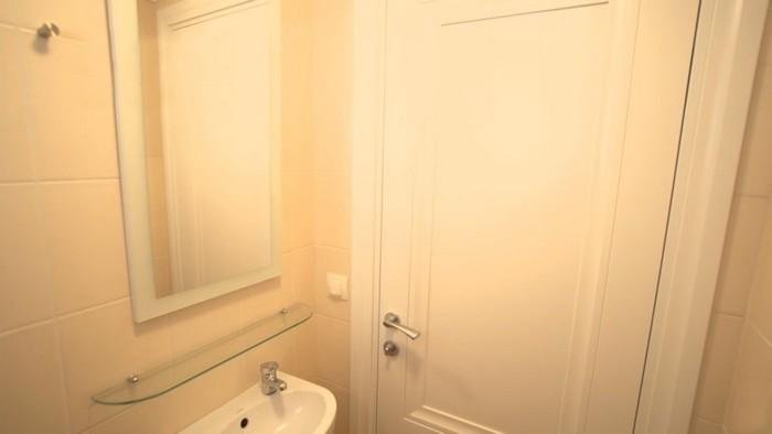 Дополнительным сюрпризом стал небольшой санузел, встроенный на месте кладовой. Кладовка была крохотной, поэтому сантехнику пришлось подбирать тоже небольших размеров. В итоге получилась полноценная, оборудованная всем необходимым комната.