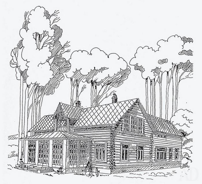 Изначально дом был одноэтажным, его основой стала русская изба. Второй этаж достраивали позднее. В начале 60-х годов к дому с полукруглой верандой сделали пристройку и теперь на участке возвышаются два дома, объединённые одной стеной.