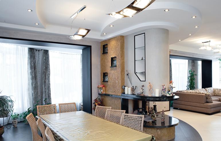 Сложно сказать сколько раз дом был переделан, пока не обрел свой нынешний вид. В итоге на первом этаже расположился большой зимний сад, далее идет гостиная комната, отделенная оригинальным камином от столовой.
