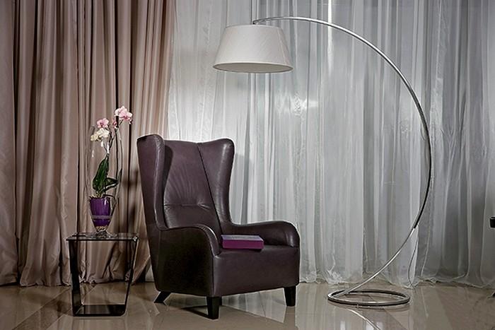 Чуть дальше стоит такого же цвета кресло, оно как бы создает свой уютный островок с черным пианино и оригинальным дизайнерским торшером. Расположившись здесь можно отдыхать, погрузившись в интересную книгу или слушать мелодии пианино.
