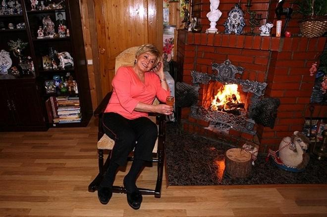 Хозяйка любит сидеть на кресле качалке у камина, но больше все же предпочитает кабинет на втором этаже и баню.