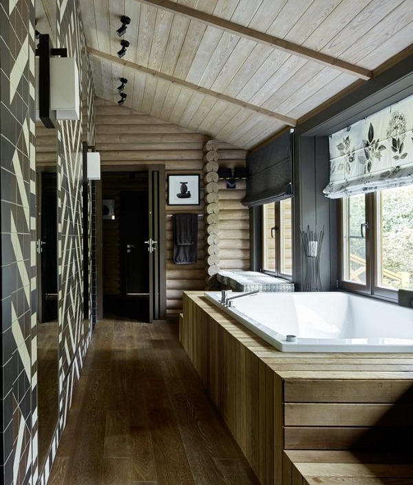Изначально планировалось лишь расширить баню, но в итоге все обернулось строительством гостевого дома, со своим «мужским характером». В доме есть полноценный хаммам, так же установили бар и большой диван с кожаной отделкой, и интерьер заиграл по-новому.