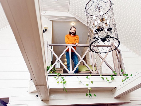 Илья признается, что не особо отличается оригинальностью и считает камин одним из любимых мест в доме, а так же любит отдыхать на втором этаже, где установлено кресло качалка.