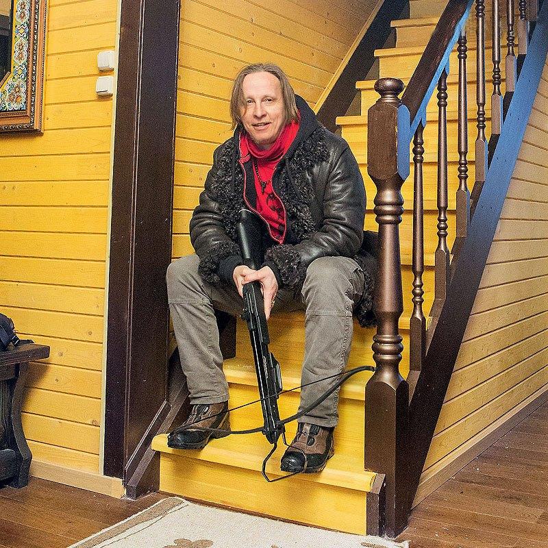 В отдельной комнате есть внушительная коллекция ружей. Охлобыстин является сторонником легализации короткоствольного оружия и состоит в Союзе охотников и рыболовов России.