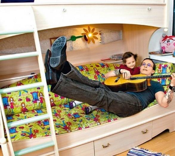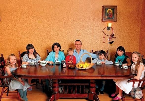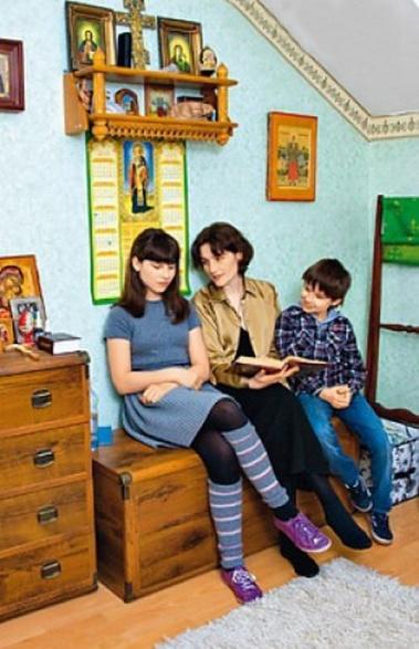 После двухкомнатной квартиры этот дом семье показался просто огромным. Просторная гостиная с камином вмещает не только всю семью, но и гостей. В ней установлен длинный стол, за которым каждый вечер собирается вся семья Охлобыстиных.