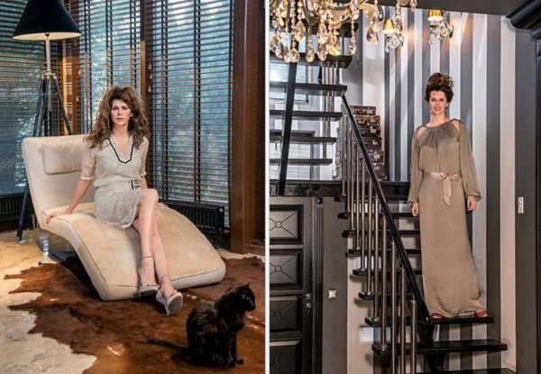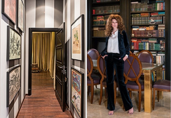 Второй и третий этаж отданы под приватные зоны. На третьем живут сыновья. На втором расположены спальня, кабинет, гардеробная и ванная. Здесь повсюду царствует бархат. Окна здесь всегда закрыты и в доме нет ни одних часов. Так хозяйка специально задумывала, чтобы можно было спокойно отдыхать не зависимо от времени суток.