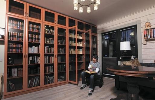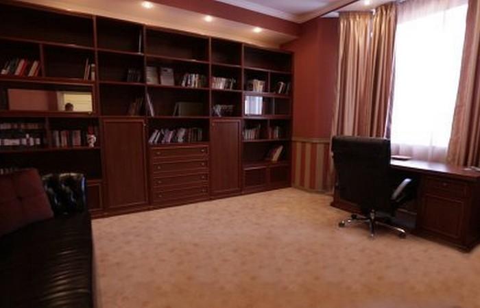 Библиотеке певица уделила особое внимание, так как в последние годы увлеклась чтением. В этом светлом и просторном помещении одна из стен полностью оборудована закрытыми стеллажами, которые наполнены разнообразными книгами. Рядом стоит круглый стол из темного дерева и диванчик, на котором удобно расположиться с книгой в руках.