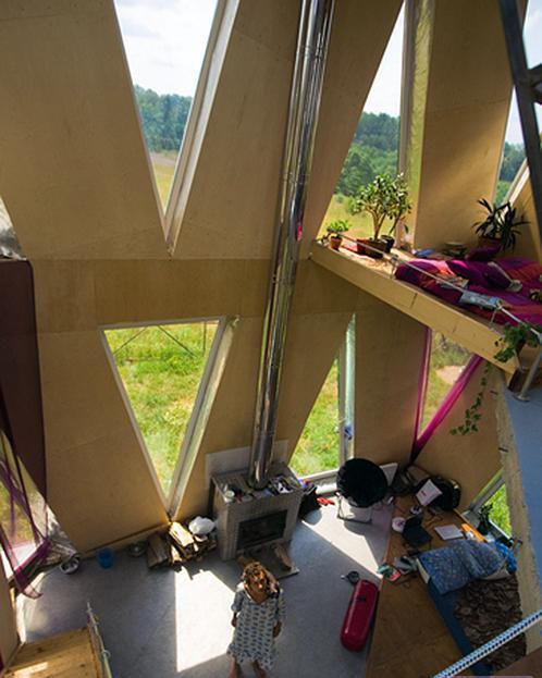 В доме практически не требуется установки отопления или кондиционирования - за счет своей конструкции он хорошо держит тепло. В нем как в термосе - тепло зимой и прохладно летом. Отапливается все помещение одним небольшим камином.