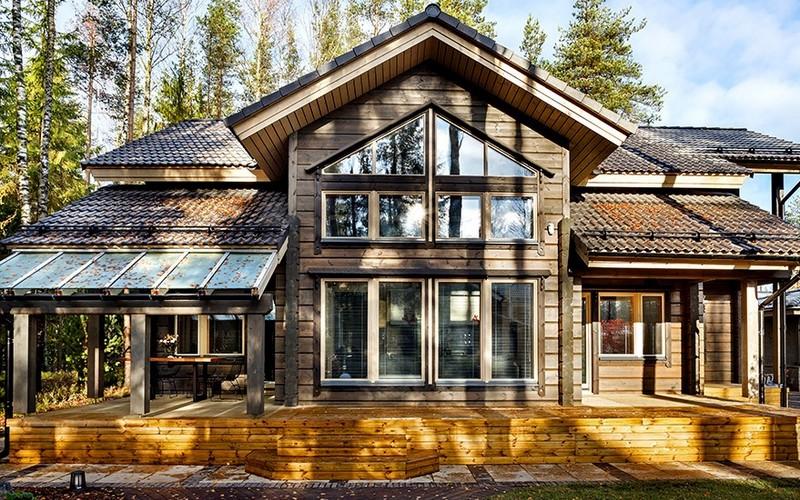 Размер особняка значительно больше питерской дачи. От больших открытых террас, которые они делали под Петербургом, решили отказаться. В эксплуатации они оказались совершенно неудобными. Зимой с них нужно постоянно счищать снег, а летом убирать от дождя мебель. Здесь ограничились небольшой закрытой терассой.