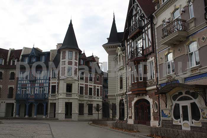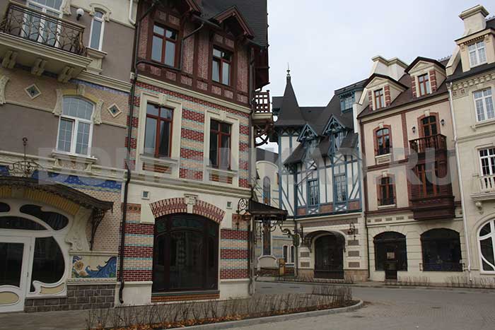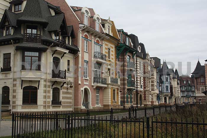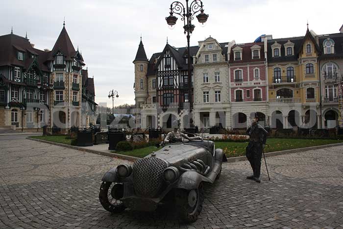 Особенно это чувство переноса в иную реальность настигает на главной площади поселка, называющейся Северной. Она фактически скопирована с площади оригинального города во Франции. Есть даже здание, выполненное «под» мэрию французского Довиля. Посреди площади возвышается Чарли Чаплин у ретро-машины, а в летнее время здесь функционируют фонтаны. Вся эта площадь окружена яркими таунхаусами, которые, в отличие от других жилых объектов поселка, не имеют при себе участков земли. На первом этаже всех таунхаусов расположены маленькие магазинчики, которые нельзя приобрести, а только взять в аренду, и кое-какие инфраструктурные объекты. Впрочем, об этом подробнее чуть позже. Вход же в сами таунхаусы и их гаражи расположен с другой стороны.