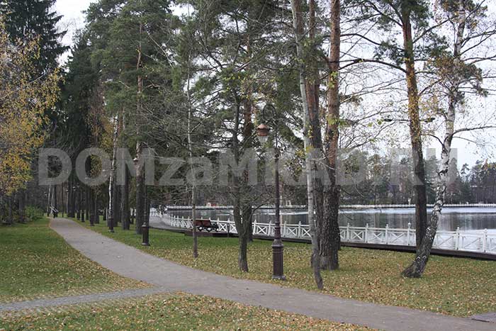 «Парковые зоны занимают 30% территории. Аллеи вокруг озера достались нам от купца Корзинкина, — говорит Никитина.-То есть мы использовали пешеходные аллеи, которые уже проходили вокруг озера и учли их планировке поселка. Они разделяют жилую и парковую зону. Концепция всех наших поселков такова: они для тех, кто желает общаться, кто хотел бы знакомиться с соседями и проводить время не только на своей территории. Поэтому у жителей Довиля, нет, допустим, собственных лодок и шумных скутеров».