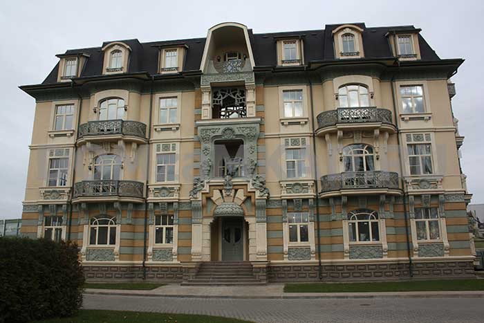«Идея построить поселок, повторяющий облик знаменитого курорта, возникла у совладельца «Довиля» в 2003 году, — рассказывает Никитина. — Поселок, как проект, начался с приобретения территории. Застройка же началась в 2004 году. Жилые дома были спроектированы архитектурным бюро «АрхНико», входящим в группу компаний «МИРУМ». При их возведении использовались эскизы французских архитекторов и архивные материалы XIX-ХХ веков. Здесь широко представлены и модерн, и готика, и ренессанс. К созданию поселка привлекались также пять французских фирм, потому что одними собственными силами воспроизвести французский стиль невозможно. При этом французам, в свою очередь, нелегко понять наши климат и менталитет, так что проект этот совместный, и есть детали, которые без участия русских архитекторов были бы невозможны. Могу сказать, что признание французов мы получили — тамошний телеканал показывал ролик о нашем поселке, нас посещали супруга мэра французского Довиля и генеральный директор довильского отеля «Рояль-Нормандия». Никто из них не называл наш поселок плагиатом, но все подчеркивали, что форма выдержана идеально».