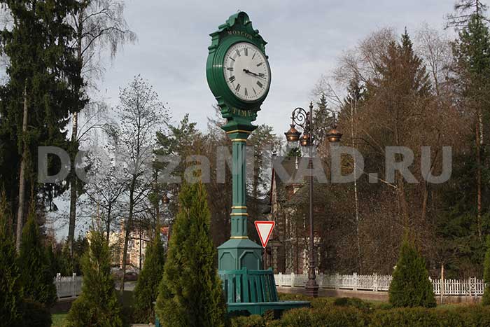 В «Довиле» продумана буквально каждая деталь. Здесь и там на улицах возникают интересные детали оформления-то причудливые часы, то интересная скульптура. Скульптуры выполнены в той же стилистике, что и дома. А КПП поселка со стороны Минского шоссе представляет собой тоже какое-то сказочное сооружение — с обеих сторон его фасады увенчаны башенками и заборчиками и красивыми часами с ярко-синей отделкой на циферблате.