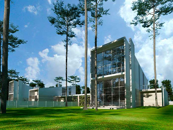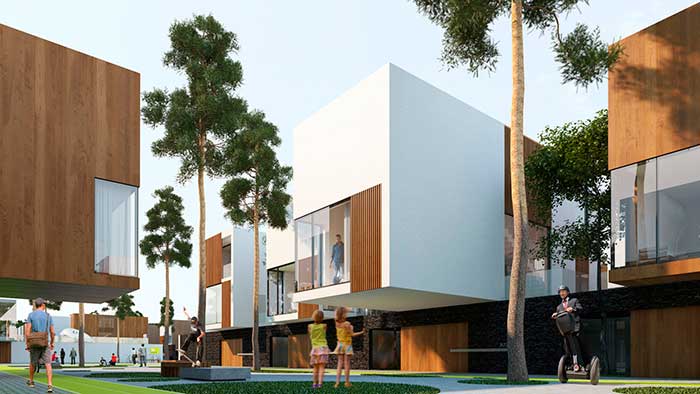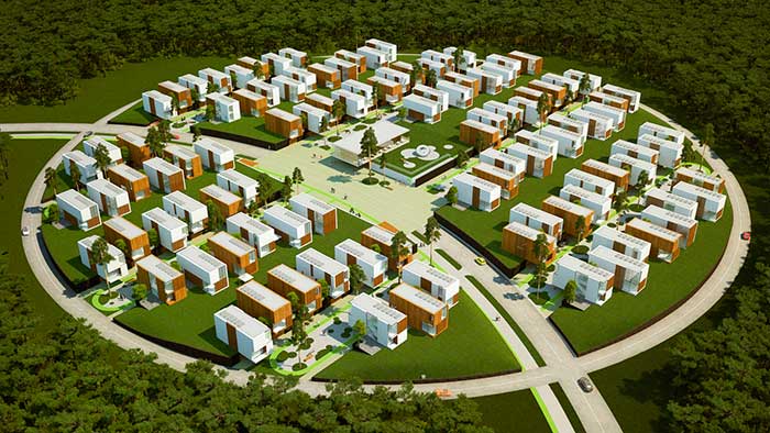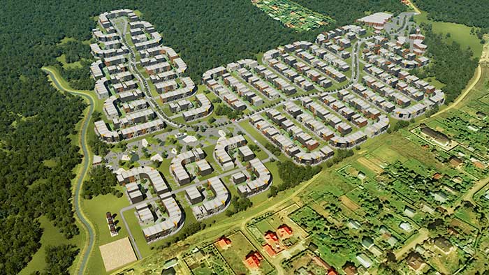 Идеальный поселок должен быть большим — от 300 домовладений или 60 га. Только в масштабных проектах можно и целесообразно строить всю необходимую инфраструктуру — с общественным центром, школой, развлекательными и спортивными заведениями. Что касается месторасположения, рядом не должно быть старых деревень, чтобы не возникало диссонанса с современной застройкой. Чтобы максимально обеспечить домовладения хорошими видовыми характеристиками, поселок должен располагаться ни в лесу или около реки, а на склоне, рядом с опушкой. Такой поселок лучше всего проектировать рядом с центром притяжения культурной и общественной жизни, административным центром, потому что всем необходимым для круглосуточного пребывания набором функции проект обеспечить невозможно, даже имея в распоряжении очень большую площадь застройки.