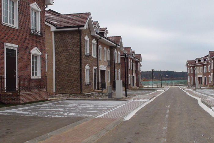 В отделке фасадов использованы довольно дорогие отделочные материалы: бельгийский кирпич разных оттенков и керамическая черепица Braas. На мой взгляд, внешний облик домов получился приятным и вместе с тем ненавязчивым. К сожалению, в зонировании пространства комплекса нет никакой изюминки — мы видим монотонные ряды пусть симпатичных, но одинаковых домов. Хотя, возможно, «руки» хозяев разнообразят этот скучный пейзаж.