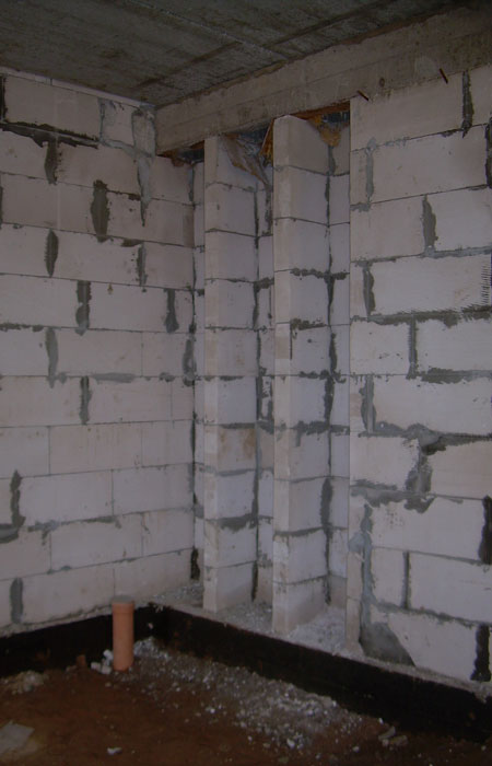 Место, где будут смонтированы стояк канализации и вентиляционная труба, выделяются углублениями в стене.