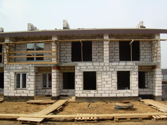 Дома возводятся на свайных фундаментах и монолитных роствергах. Наружные стены будут представлять собой газобетонные блоки, внутренние — блоки из керамзитобетона. Перекрытия — сборные, из железобетона, частично монолитные. Кровля — это деревянный каркас с мягкой черепицей. Окна пластиковые, наружные двери — металлические.