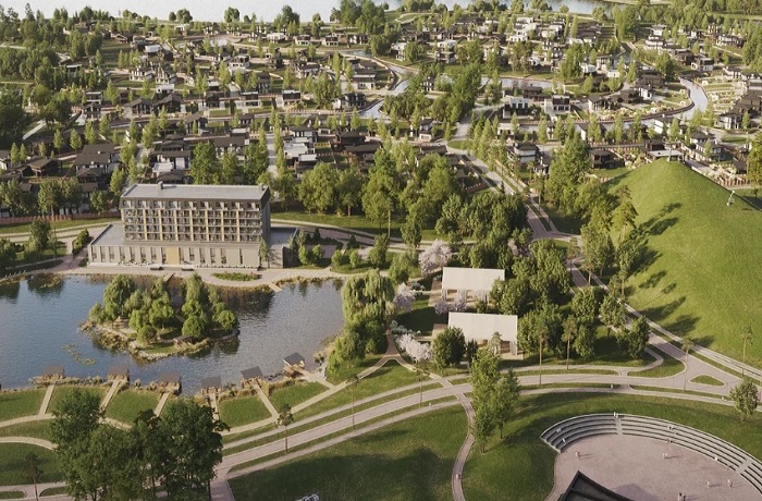 Коттеджный поселок "ZIGGURAT Country Club" – премиальная новинка текущего года. Место для него выбрано рядом с деревней Токарево – ровная береговая линия протяженностью в 4 километра дает широкие возможности благоустройства. Территория составляет 60 гектар – здесь запланировано 300 домовладений на участках от 8 соток до полугектара. Реализуются участки со строительным подрядом, коттеджи площадью от 111 до 350 кв. метров выдержаны в трех стилях – "хай-тек", "шале" и "органический стиль Райта". Цены на старте продаж начинаются от 80 млн рублей за коттедж с участком в готовности "под ключ". Застройщик обещает курортную инфраструктуру с яхт-клубом, ресторанами, банным комплексом, своим горнолыжным склоном, отелем и пр. В настоящее время продажи только начинаются и говорить о реализации этого красивого проекта пока рано – готовность первой очереди заявлена на 2028 год.