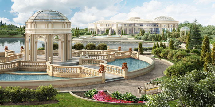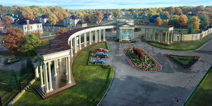 Итак, что предлагает «Ренессанс Парк»? Архитектурная концепция поселка – это итальянские террасные сады, с ротондами, парковыми скульптурами, фонтанами, широколиственными деревьями. Входная группа и большинство проектов домов решены в стиле ампир. Так же предлагается несколько вариантов коттеджей в стиле ар-деко. Все дома будут выполнены из кирпича с деревянными стеклопакетами, натуральной черепицей.
