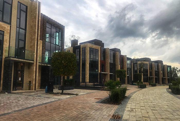 Сдача таунхаусов происходит после полного благоустройства улиц вокруг. Дороги для машин, пешеходные зоны и придомовые участки выполнены на одном уровне, без перепадов высот, и выложены плиткой.