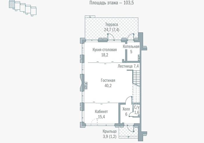 Высота потолков до 3,5 м в сочетании с прозрачными стенами делают помещения объемными и воздушными. Таунхаусы сдаются в свободной планировке в угловых секциях площадью от 310 кв. м и рядовых площадью от 278 кв. м с участками в собственности от 2,2 до 10,2 соток.
