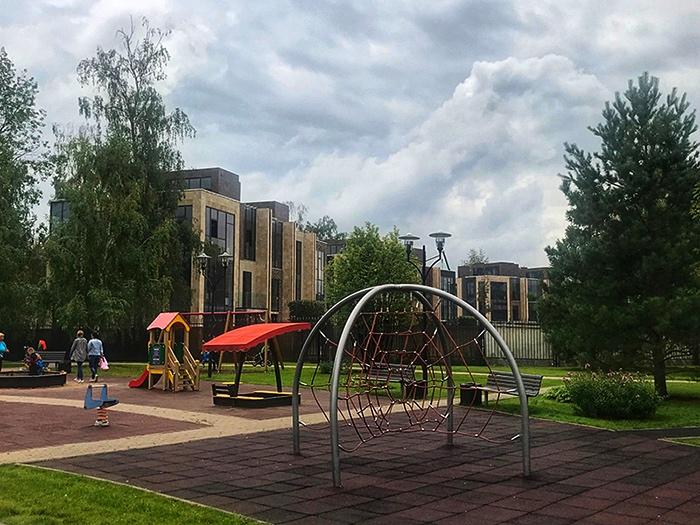Одноуровневые дороги - ноу-хау в Подмосковье, за счет отсутствия зонирования высотой общие зоны выглядят просторно и эстетично, не возникает трудностей при передвижении с коляской или на велосипеде.
