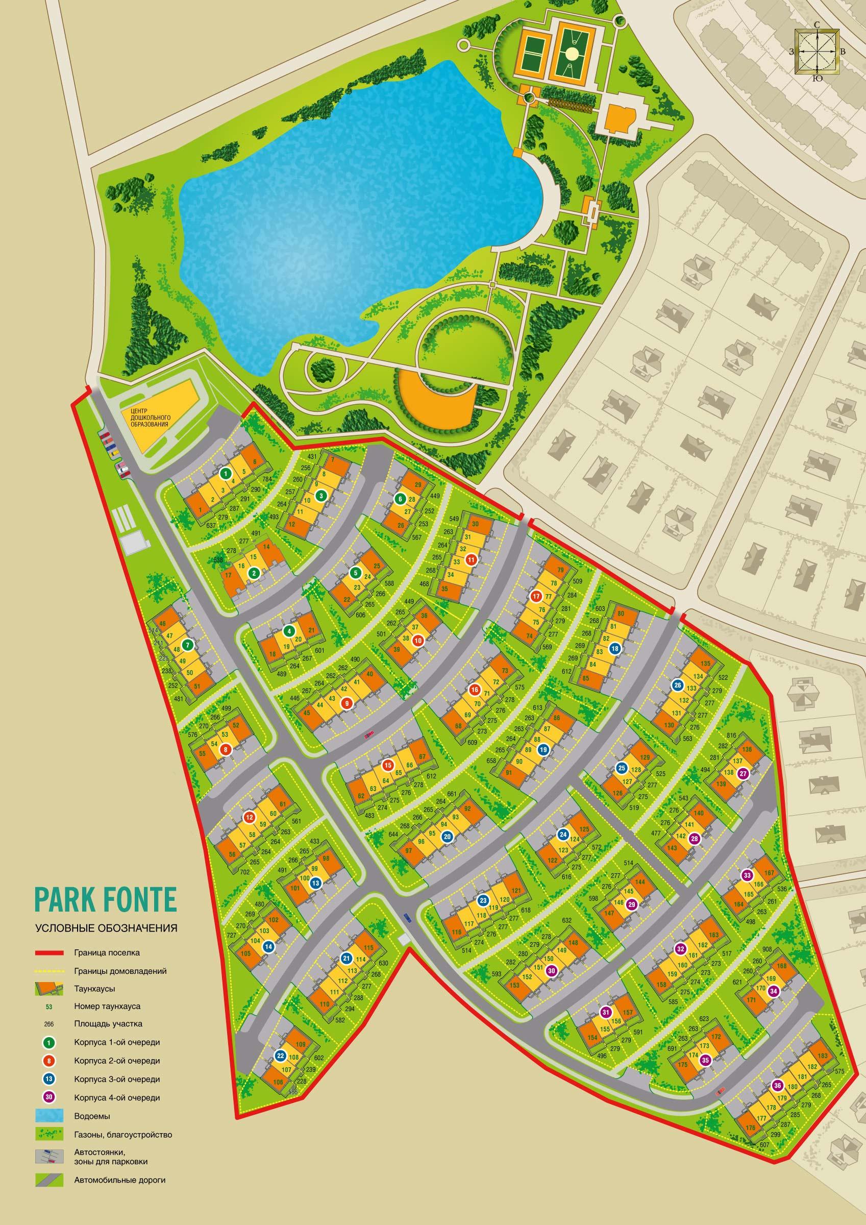 Парк Фонте строится в 4 очереди. На текущий момент проданы примерно половина таунхаусов первой очереди, которая почти достроена и скоро будет введена в эксплуатацию.