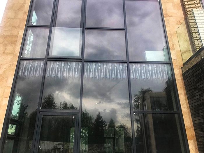 Перекрытия этажей спрятаны под изящной гравировкой на стекле.