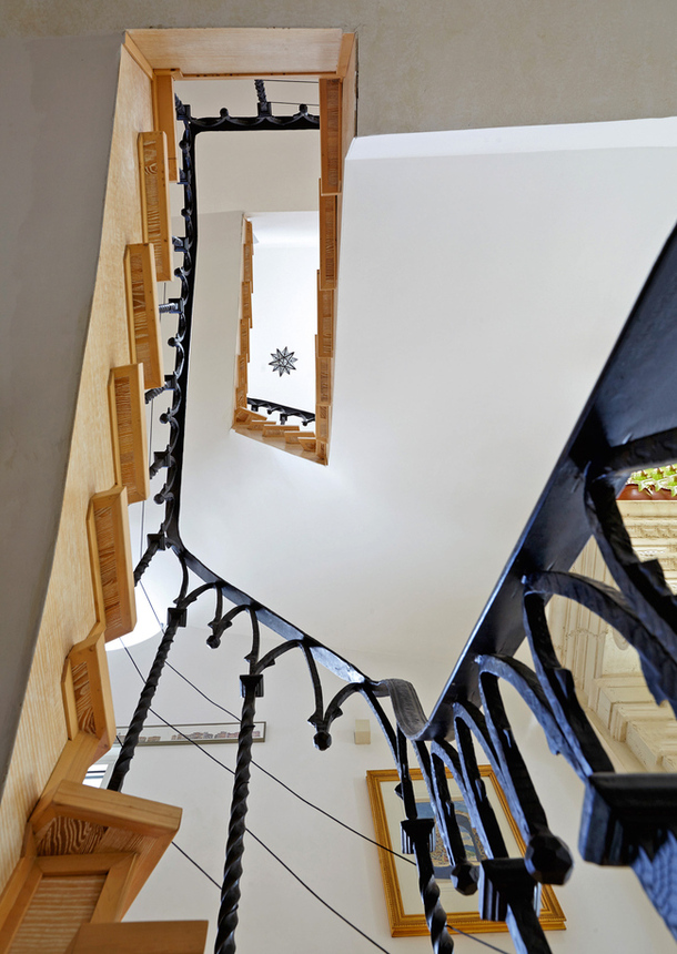 Дом растет вместе с детьми — уже готов проект третьего этажа, и мы с хозяином, поднявшись на верхнюю террасу, осматриваем его будущие границы. С верхней точки открывается неплохой обзор окрестностей и видны все четыре виллы, спроектированные Гликманом для соседей по деревне.
