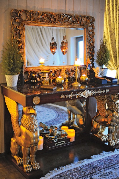 Всего в особняке экстрасенса пять спален и одна гостиная. «Это мое первое собственное жилье, – признается 44-летняя Фатима. – С ремонтом мне очень помогли друзья – товарищи из Белоруссии, например, сделали хорошую скидку на кухню из натурального дерева. Обожаю свою спальную комнату. Дизайнер оформил ее в стиле Наполеона Бонапарта. Изголовье кровати и туалетный столик из натурального дерева, их украшают золотые ножки».