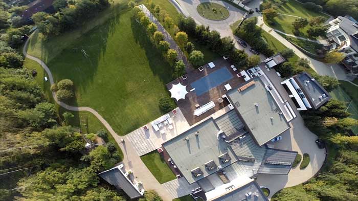 Подобное «скромное» семейное гнездо с участком около 115 соток (согласно Генплану застройки) риэлторами оценивается в районе $10 млн. На участке можно заметить «скромный» дом и такой же «скромный» бассейн, это не считая великолепного ландшафтного дизайна и «скромного» футбольного поля. Все эти «достопримечательности» участники экскурсии смогли понаблюдать воочию — при помощи небольшого летательного аппарата с видеокамерой.