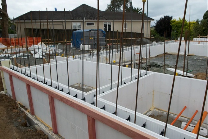 - Метод съемной опалубки или ТИСЭ (технология индивидуального строительства и экология) - опалубку из пластика, фанеры, дерева или металла устанавливают на готовый фундамент и заливают строительной смесью. После высыхания, опалубка снимается и перемещается в другую часть возводимого дома. Таким образом, постепенно заливаются все стены. Вариант такого метода — технология цельной опалубки, когда сразу заливаются все стены. Используют его только крупные строительные компании, располагающие профессиональным оборудованием.