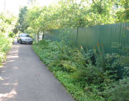 из профнастила, со стороны 3 соседей - деревянный забор.