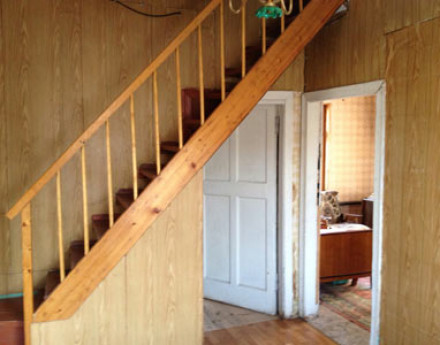 Внешняя отделка - сайдинг, внутренняя - обои.