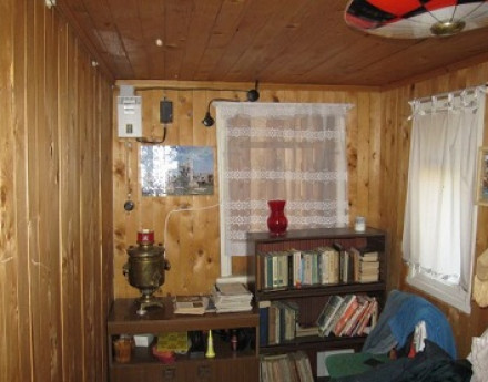 70 км от МКАД, Клинский р-он, СНТ "Дальний". Дом 45 кв.м., участок 8соток. Небольшой дачный поселок посреди полей и лесов. На участке небольшой летний домик с террасой и мансардным этажом (внутри обит вагонкой), металлический гараж, бревенчатый сарай, душевая кабина от "Зодчий". На уч-ке электричество,летний водопровод,