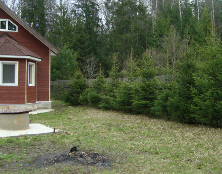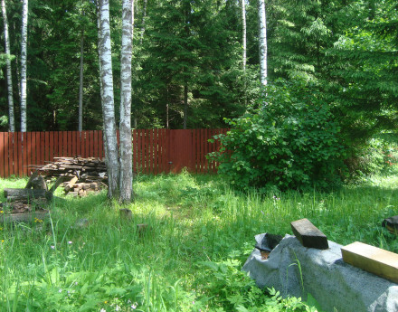 - Ограждение участка: Деревянный забор