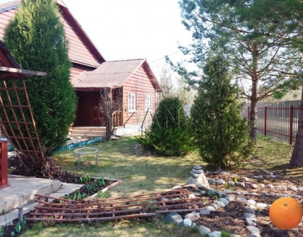 Дмитровское шоссе, 85 км от МКАД, Талдомский район, дер. Гуслево, СНТ. 5 км от пгт. Вербилки. Комфортный и уютный дом для круглогодичного проживания в охраняемом СНТ среди коттеджной застройки близ деревни Гуслево. Дом 180 кв.м, двухэтажный, брусовой, на высоком ленточном фундаменте, снаружи обшит вагонкой laquo;блокхаусraquo;, внутри ndash; вагонка. Очень удобное планировочное решение, 2 выхода на разные стороны участка. На 1-м этаже: просторная прихожая, зал с камином; проходная кухня-столовая, откуда через веранду можно выйти в сад; спальня; кладовая; раздельный санузел; большая пристроенная открытая веранда ndash; прекрасное место для чаепитий и пикников на открытом воздухе На 2-м этаже 3 спальни и большой холл. Электричество 15 кВт разведено по дому, на кухню и в санузел подведена вода от собственного колодца (7 колец), разведена канализация (3 бетонных септика), отопление ndash; печь (булерьян), способная обогреть большое пространство, благодаря своей теплоотдаче, камин и электроконвекторы. Участок 15 соток, угловой, по периметру огорожен забором (металлический штакетник). На участке хозблок, совмещенный с гаражом, перед въездом в гараж стоянка на 2 авто, большая шестигранная беседка, оплетенная зеленью, гостевой домик (спальня и прихожая), и баня (парная, комната отдыха, душевая), в бане разведены водопровод и канализация (отдельный колодец и септик). Участок ухожен и возделан с любовью! Аккуратно подстриженный газон, дорожки вымощены плиткой, фигурные гряды и клумбы (70 кустов роз), и плодовый сад, где растут, дающие ежегодно урожай, яблони, груши, сливы, вишни, смородина, крыжовник, жимолость и т.д. Также на территории есть декоративные посадки (18 туй), лесные деревья и молодые березки, что так символично для любителей русской природы. Круглогодичный подъезд, зимой дорогу чистят, хорошее транспортное сообщение с Москвой. От д. Дубки можно добраться до ж/д ст. Вербилки или до г. Талдом. В 15 мин. ходьбы автобусная остановка и магазин, где можно купить все самое необходимое. Территория СНТ огорожена забором и охраняется. В 300 м лесной массив, где в сезон изобилие ягод и грибов. В 10 мин. ходьбы небольшой пруд для рыбной ловли, а в 20 мин на велосипеде река Дубна ndash; прекрасное место для проведения досуга.