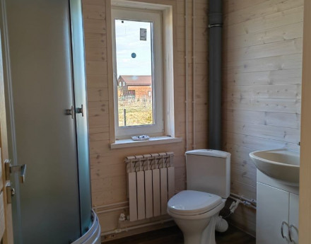 Современный новый дом для круглогодичного проживания 160 кВ м, участок в лесу 9 соток. Брус 150 мм , утеплен по всему периметру в два слоя мин ватой Изорок, ленточный армированный фундамент, крыша металл-черепица с утеплением; внутренняя и внешняя отделка имитация бруса; двухкамерные стеклопакеты; автономная канализация, отопление ,электричество(15 квт),вода-колодец, разведено по дому, сантехника установлена.