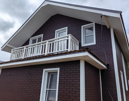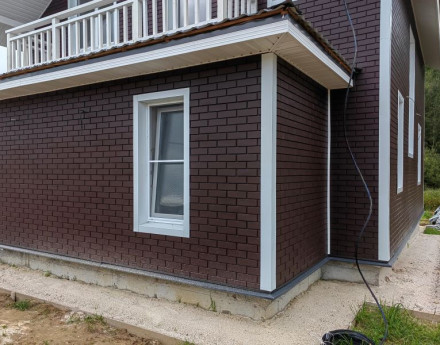 Коттедж из пеноблока. Фундамент: монолитная плита. Крыша :метало черепица. Основные капитальные конструкции. Перекрытия ж/б плиты. Фасад – сайдинг.