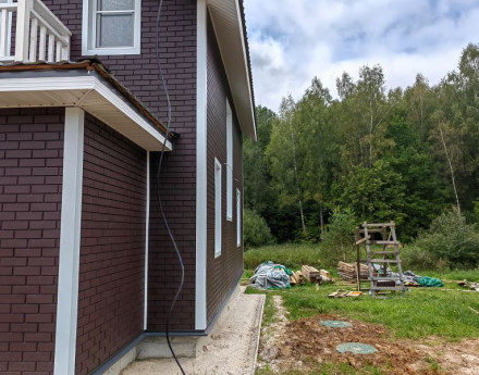 Дом из пеноблока крайний к лесу с теплым полом 165 мкв. у д. Сенино в пос Новое сенино 10-15 соток земли. Рядом лес. Расположен в живописном месте, в 10 км от г. Чехов, 57 км от МКАД по Симферопольскому Калужскому шоссе, 38 мин. езды.