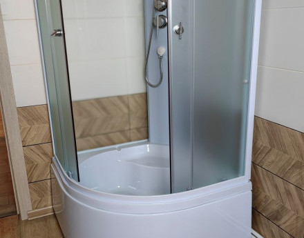 План дома : 1 этаж – крыльцо, прихожая, бойлерная, большой холл, сан. узел, кухня – гостиная с выходом на террасу, комната.; 2 этаж – просторный холл и 3 спальни, сан. узел. Гостиная наполнена ярким светом, в доме большие окна. В санузле душевая кабина, мебель для ванной, унитаз. На полу плитка/ламинат.