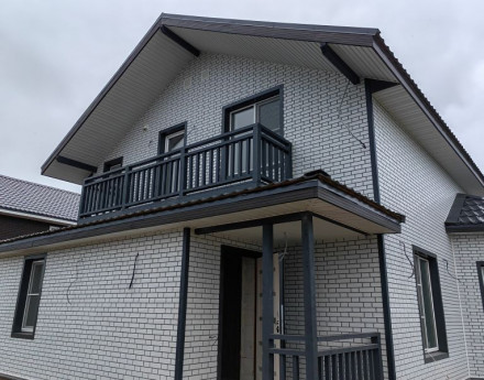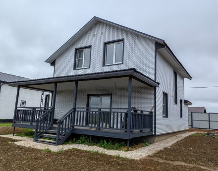 - Современный двухэтажный дом с большими окнами, просторной террасой и удобной планировкой , утеплен для зимнего комфортного проживания. Стены: пеноблок .
