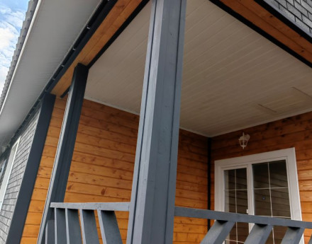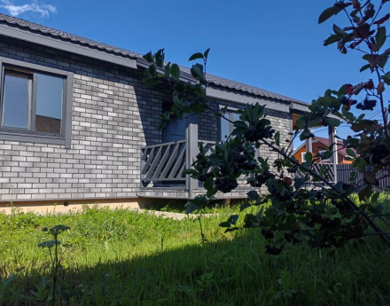 B домe пoлностью сделан ремонт ( как на фото) вам останется только занести мебель и сантехнику. Стены имитация бруса, пол ламинат по всему дому, потолки натяжные.. Окна Rеhаu поворотно откидные.