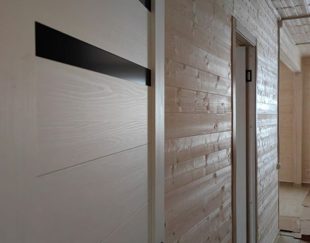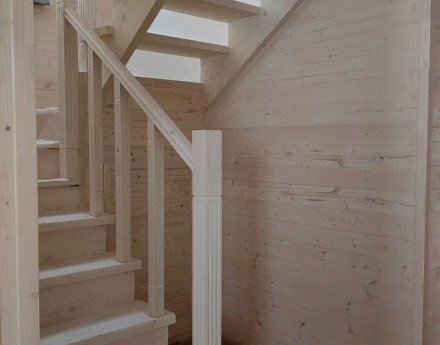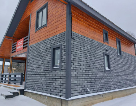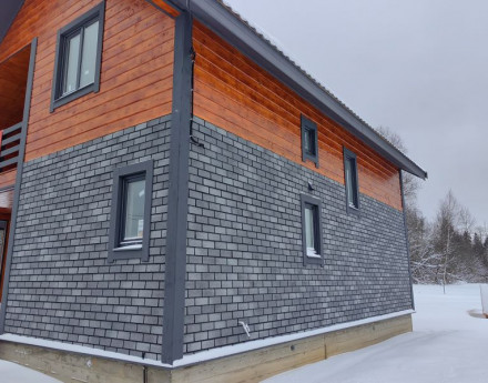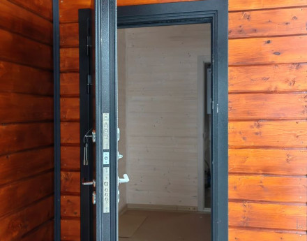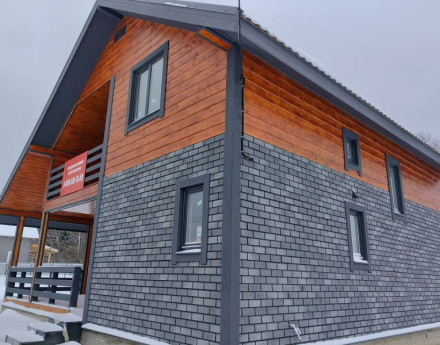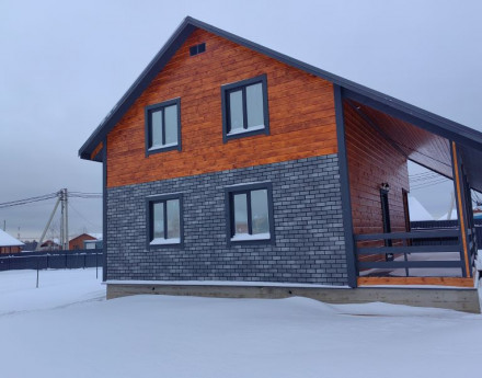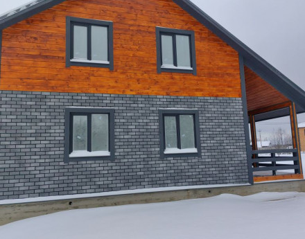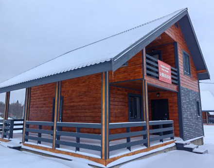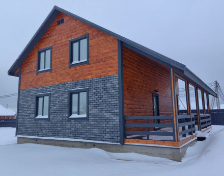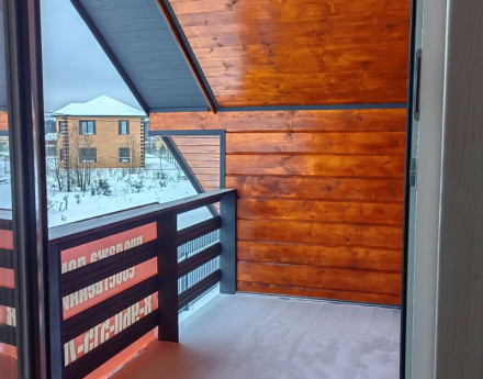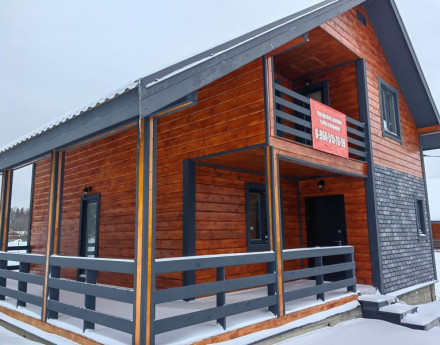 Материал стен - брус 150 мм, утепление пола и крыши 150 мм, отделка наружная и внутренняя - имитация бруса; Крыша - металл черепица; Стеклопакеты - поворотно-откидные двухкамерные стеклопакеты; Количество с/у – 2 (полностью оборудованы, на 2 этаже установлена ванна);