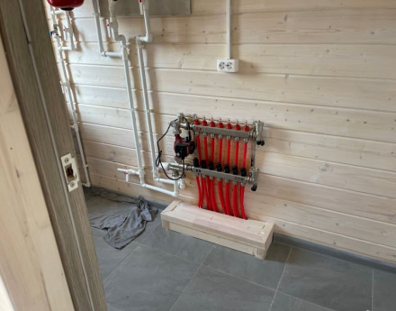 Коммуникации: Отопление от электро котла; Теплый пол, дополнительно установлены радиаторы; Электричество 15 кВт 380 В, подключено и разведено по точкам потребления. Интернет - оптоволокно. Вода заведена в дом (колодец + вывод на уличный летний полив; вода очень чистая); выполнена вся разводка по дому (душевая кабина, раковины, стиральная машина, посудомоечная машина) сантехника включена в стоимость - канализация – био септик типа Топас (без запаха и не нужно откачивать).