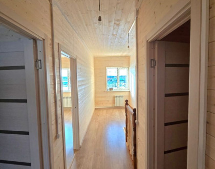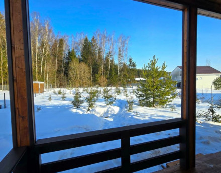 Фото реально продаваемого дома. Дом среди сосновых и березовых лесов. До города со всей необходимой инфраструктурой (супермаркеты, магазины, школы, детские сады и т.д.) - 10 минут на авто. Коттедж предназначен для круглогодичного проживания и отдыха большой семьи, с полностью оборудованными помещениями (вся сантехника, люстры, высокие потолки...).