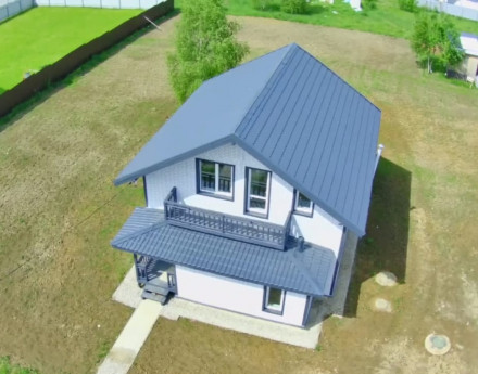 Участок ровный, правильной прямоугольной формы. На участке растут молодые деревья. Дом теплый, с возможностью круглогодичного проживания, 2 этажа. Удобная функциональная планировка. Большие окна (рехау) поворотно откидные . Фундамент плита, монолитный железобетонный на глубину 1,5 м , кровля металл черепица, окна ПВХ стеклопакеты, входная дверь металлическая утепленная.